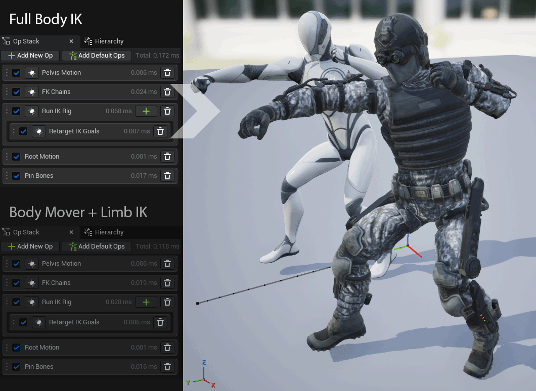 A good candidate for this setting is the Run IK Rig operation, which is relatively expensive to run, and can likely be safely disabled at a distance where the difference in retargeting accuracy wouldn't be so noticeable.