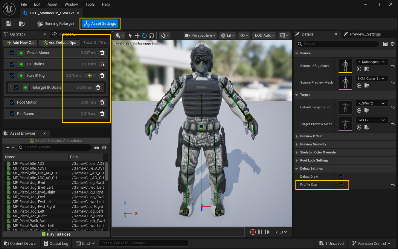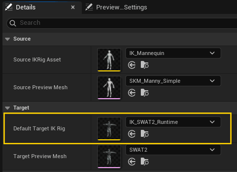 5. Finally, open the IK Retargeter asset, and in the Asset Settings, set the Default Target IK Rig to the new optimised rig.